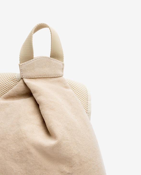 Backpack made in Ecolino fabric. This fabric is made from 100% recycled plastic bottles. Zip on the back for security. Adjustable padded contrasting straps. Size: 38cm x 15cm x 17cm