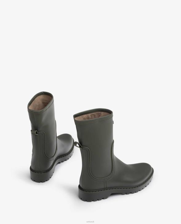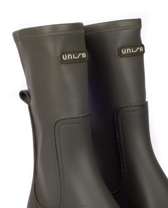 Rubber ankle boot with a stretch fabric quarter top line in faux leather fabric. Rubberized logo trim on the quarter top-line. Removable and ergonomic insole made with Respilon inner.