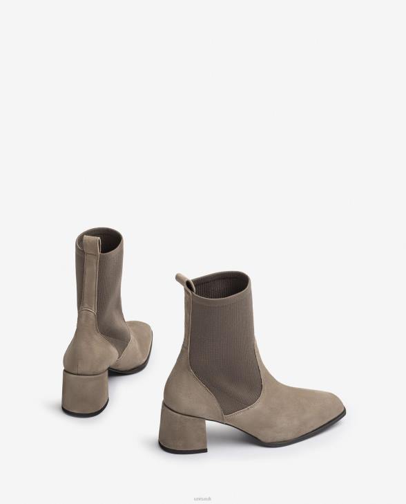 Suede ankle boots with matching colour stretch fabric on the quarter top line. Matching colour 6cm heel and rubber non-slip, light and flexible sole.