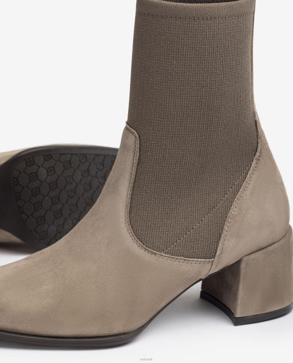 Women Unisa Square toe ankle boot with stretch fabric Brown0X8N965