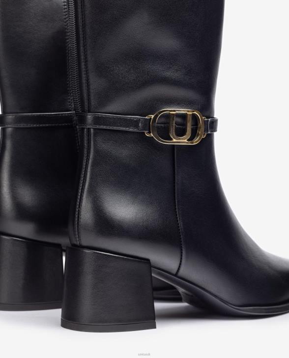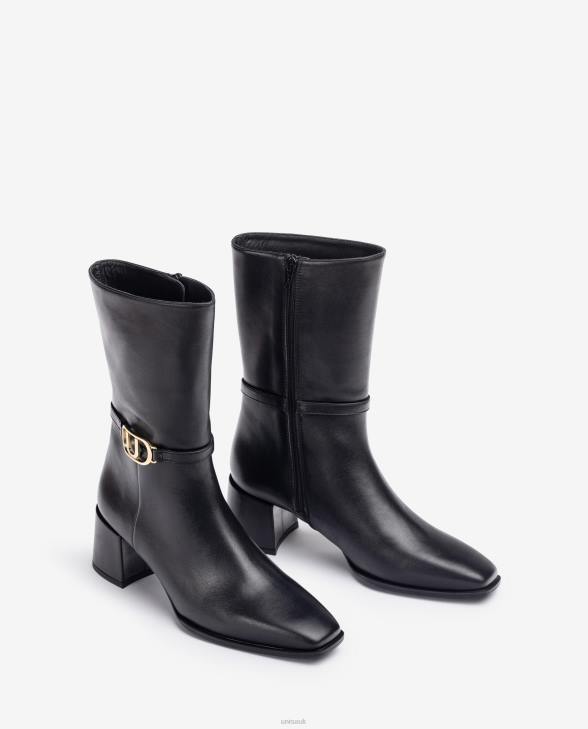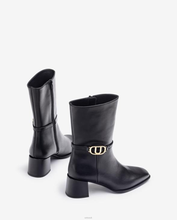 Leather ankle boots with a zip inside. Metal trim on the side. Matching wide 6cm high heel. Non-slip, flexible and light rubber sole. An essential classic in the UNISA world.