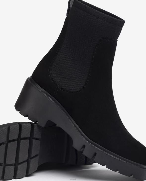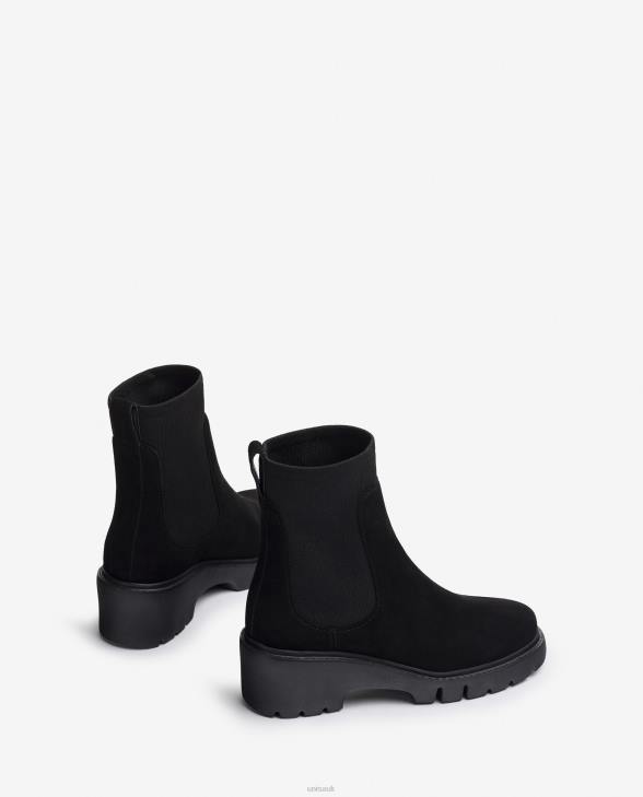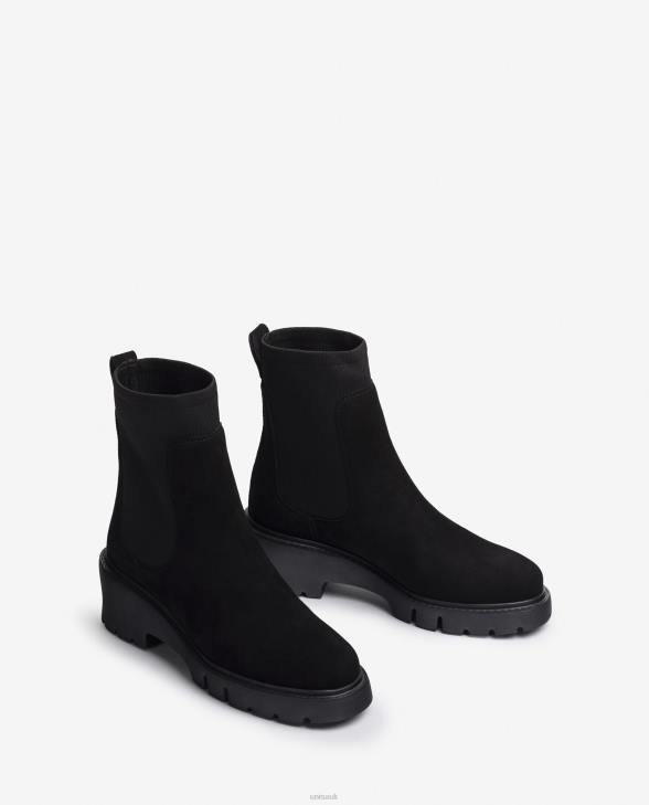 Women Unisa Suede ankle boot with stretch fabric Black0X8N919