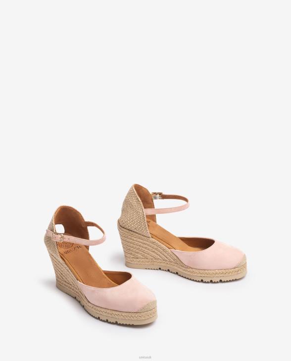 D'Orsay ankle strap round toe espadrille. Made in suede. 7.5cm high wedge covered in natural colour jute and a 1cm platform. Lighter and more flexible EVA sole than ever before thanks to the SuperLight technology. Our new collection of jutes will surprise you.