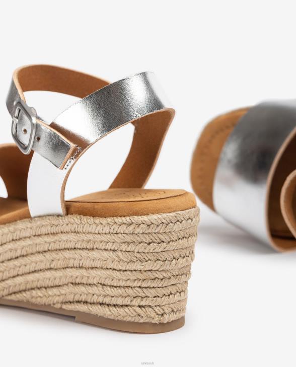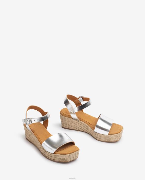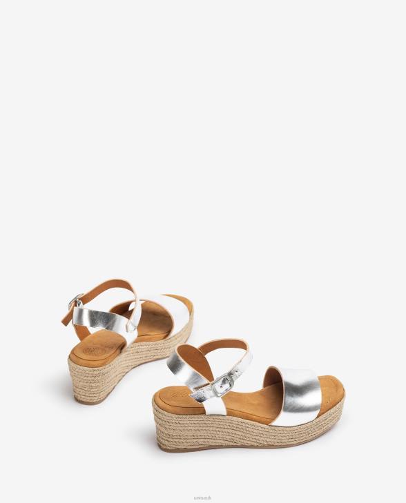 Braided jute sandal made in metallic leather. The block is covered in strips of jute, which is 6 cm at the back and 3 cm at the front. Non-slip, light rubber sole.