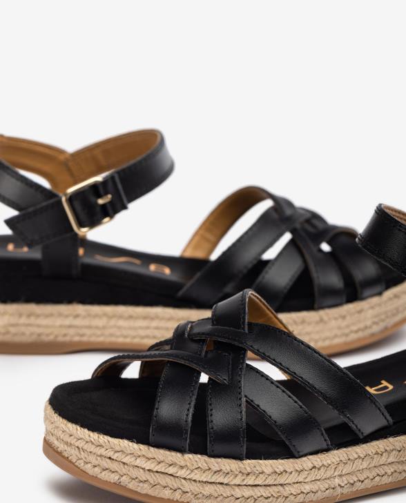 Women Unisa Leather sandals with metallic buckle Black0X8N428