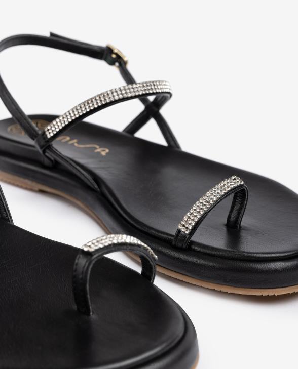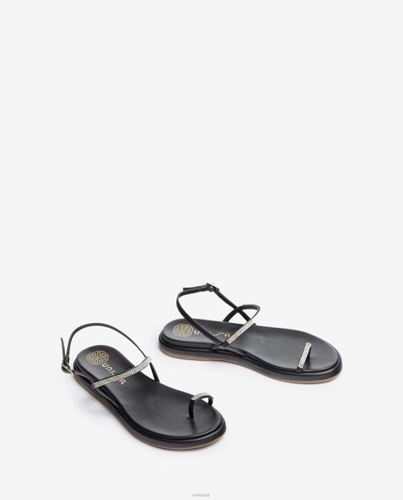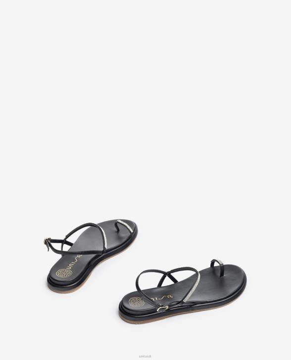 Women Unisa Flat leather toe-post sandal Black0X8N1312