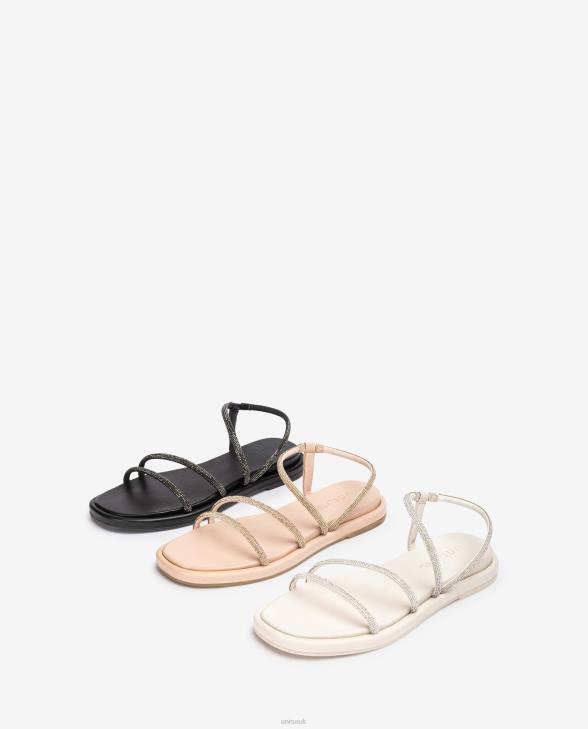 Flat round toe sandal made in leather. Thin straps with glitter and a padded insole for your comfort. Light, flexible and non-slip sole.