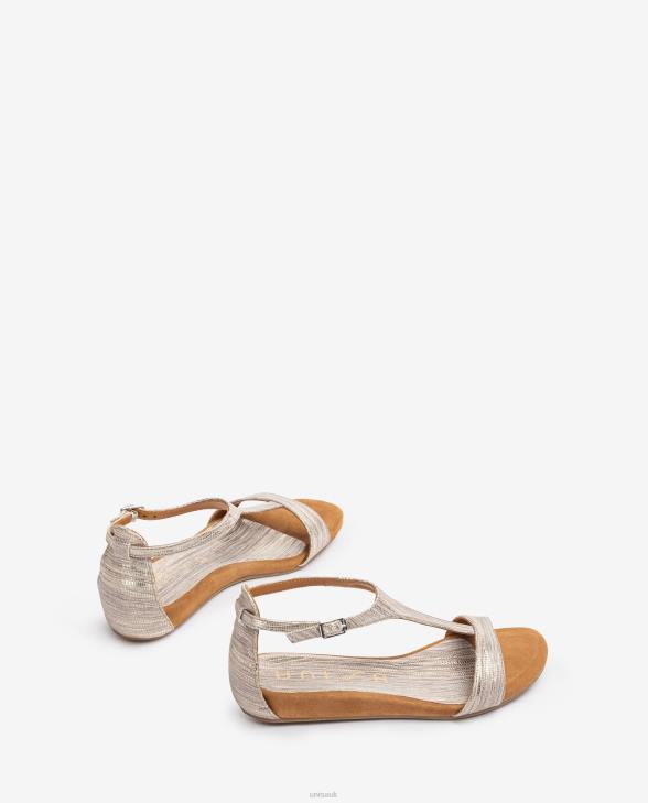 Women Unisa Metal effect leather sandals with instep strap Fashion0X8N450