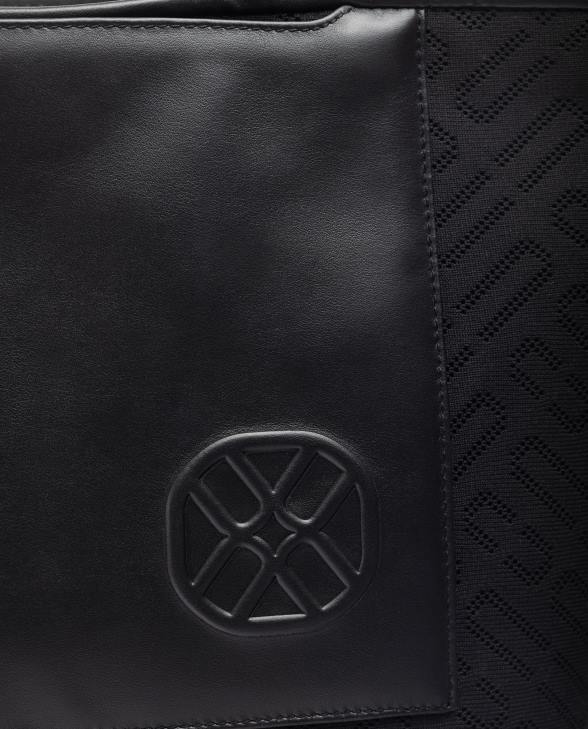 Large bag made from UNISA tone-on-tone printed fabric. Magnet closure and exterior pocket with monogram detail. Removable shoulder strap inside. Unisa loves the planet.31cm x 46cm x 14cm