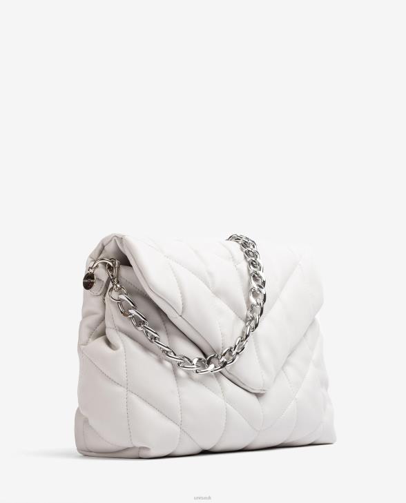 Medium padded effect handbag. Compartment with magnet closure. Hand or shoulder strap with metal chain and nylon crossbag shoulder strap.