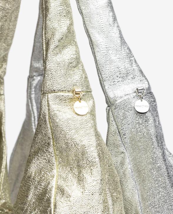 Large shoulder bag made in metallic canvas fabric. Pocket inside with a zip closure. Size: 57cm x 46cm x 14cm