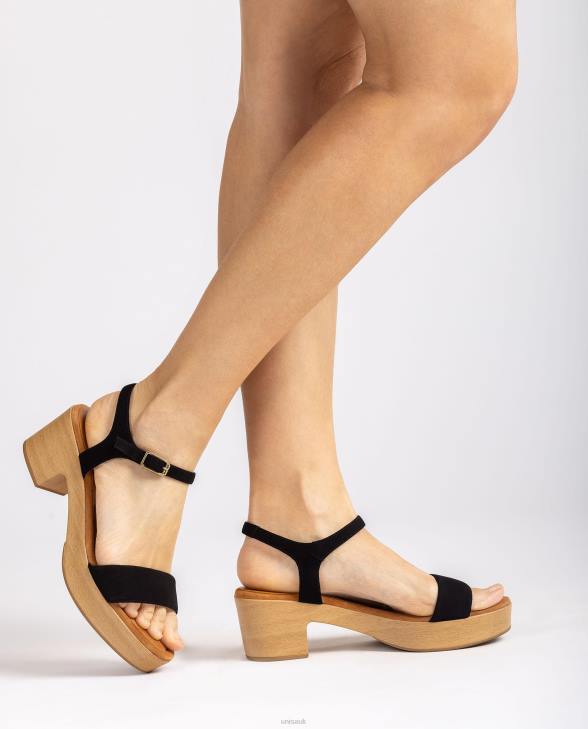 Round toe suede sandal. Ankle strap that can be adjusted with the metal buckle. Light 5.5cm high block heel and a 3cm wood effect platform. Light, non-slip, rubber sole. Unisa essence in its pure state.
