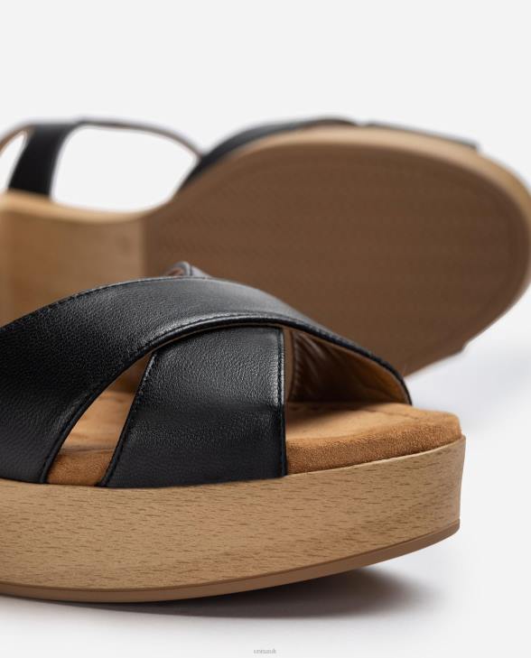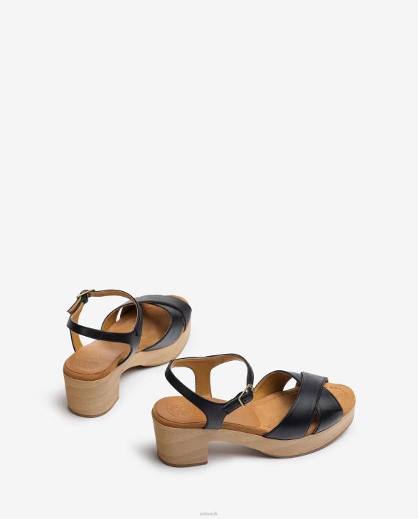 Women Unisa Medium height heel leather sandal Black0X8N404