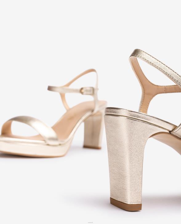Round toe sandal made in metallic effect leather. 8cm heel and 1cm platform covered in matching suede. Ankle strap that can be adjusted with the metal buckle and light, non-slip, rubber sole. Luxury handmade finishes.