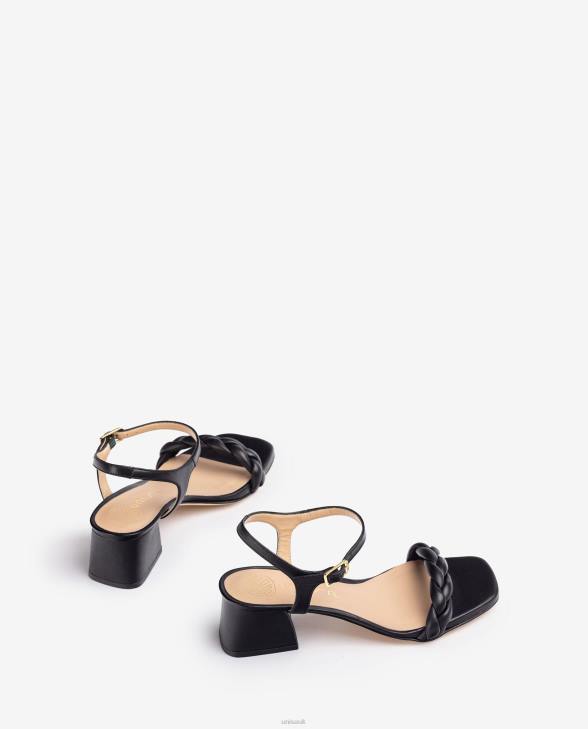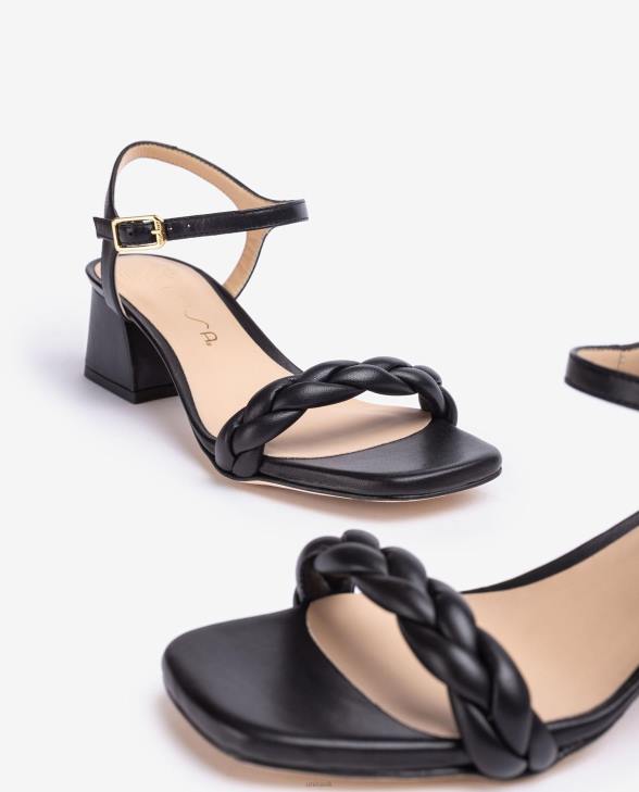 Square toe sandal made in leather. Wide 5cm matching tone heel and a braided strap on the front. Ankle strap that can be adjusted with the metal buckle. Leather sole.