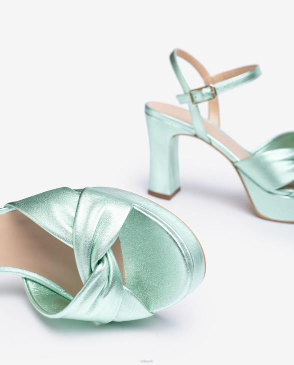 Round toe sandal made in metallic effect leather. Wide crossover straps on the front. 3cm platform and a 9cm wide heel covered in a matching tone metallic effect leather. Light, non-slip, rubber sole. An ankle strap that can be adjusted with the buckle. The ONOA sandals will be the best accessory for all your looks.