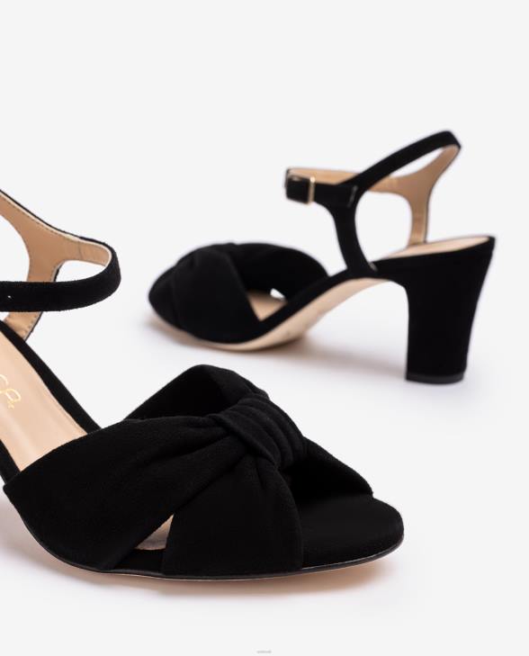 Round toe sandal made in suede. Wide straps on the front and an ankle strap that can be adjusted with the metal buckle. Matching 7cm high heel. Leather sole. Made in Spain designs that will impress everyone.