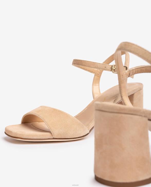 Square sole sandal made in suede. Wide 6cm heel in a matching tone. An ankle strap that can be adjusted using the metal buckle. Leather sole.