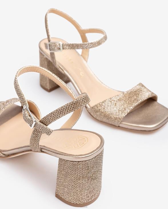 Square sole sandal made in shiny fabric. Wide 6cm heel in a matching tone. An ankle strap that can be adjusted using the metal buckle. Leather sole.