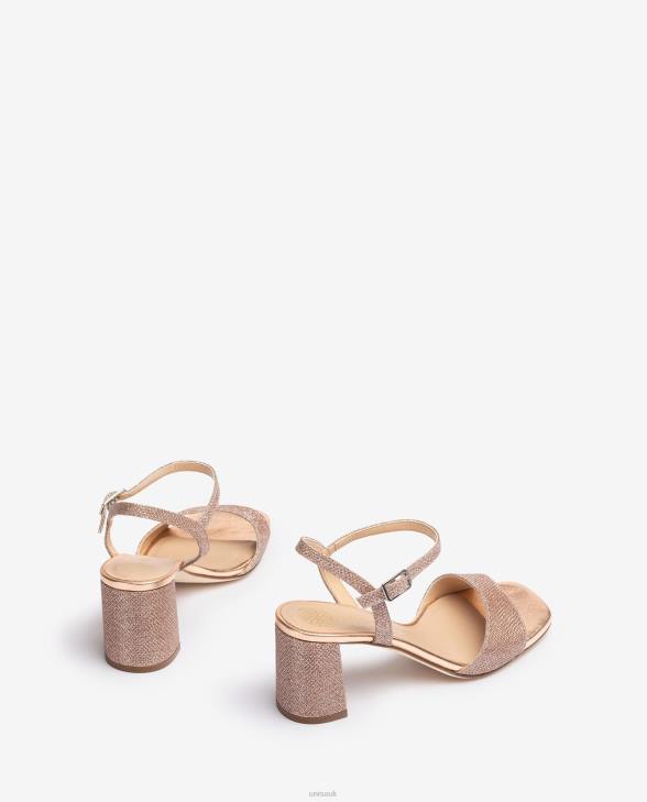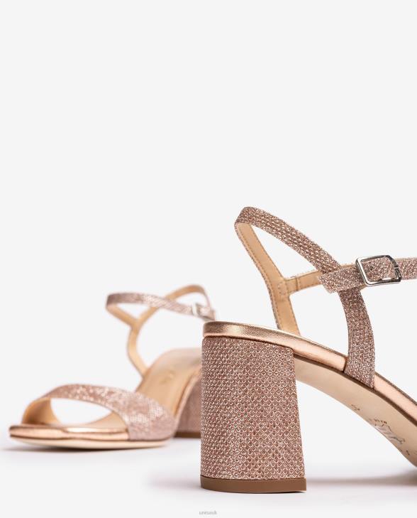 Square sole sandal made in shiny fabric. Wide 6cm heel in a matching tone. An ankle strap that can be adjusted using the metal buckle. Leather sole.
