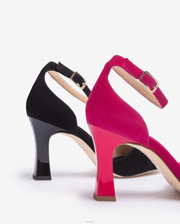 Square toe sandal made in suede. 8cm matching tone painted heel. An ankle strap that can be adjusted with the metal buckle. Thick foam in the whole sole for more comfort. Luxury handmade finishes.