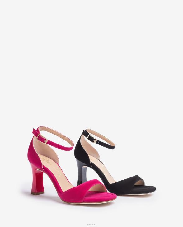 Square toe sandal made in suede. 8cm matching tone painted heel. An ankle strap that can be adjusted with the metal buckle. Thick foam in the whole sole for more comfort. Luxury handmade finishes.