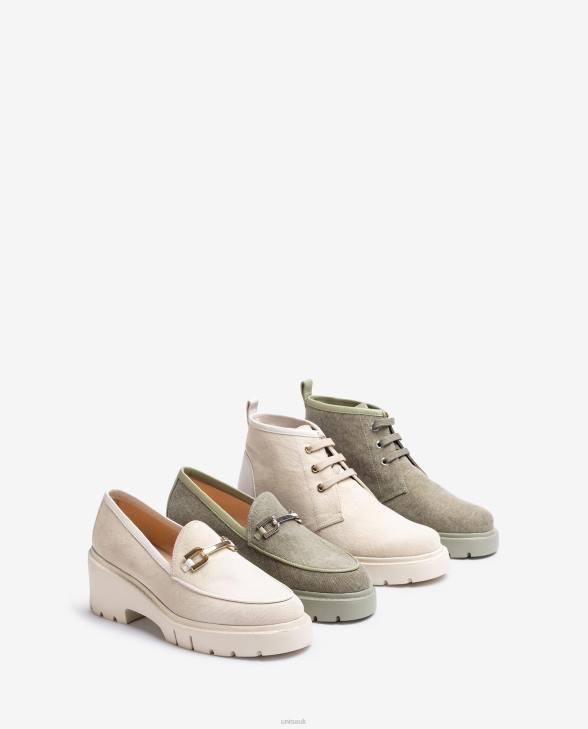 Loafers made of Ecolino fabric, made of 100% waste plastic bottles, resistant, durable and very light. Embellished with a matching band detail on the instep. Non-slip Evalite rubber sole, lightweight and very flexible, with a 2.3 cm platform and 6 cm high heel.