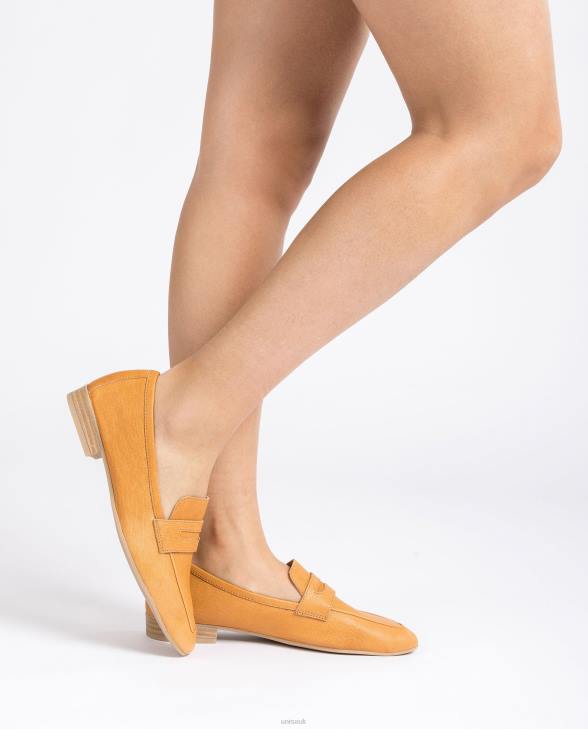 Unlined square toe loafers made in leather with a wood effect 1,5 cm low heel. Detail on the instep. Very light and flexible sole. Feel the comfort when you put these shoes on!