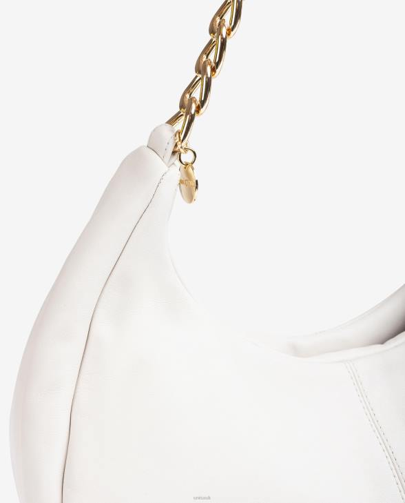 Medium size handbag made in leather. Metal chain shoulder strap. Magnetic snap closure and a pocket with a zip inside. Size: 26cm x 33cm x 12cm