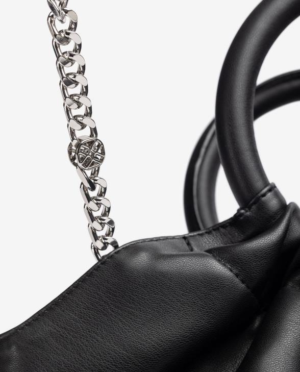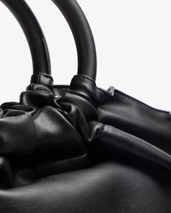 Handbag with a matching colour short round handle. Matching adjustable crossbody strap inside and a magnetic snap closure. 25 cm x 33 cm x 14 cm