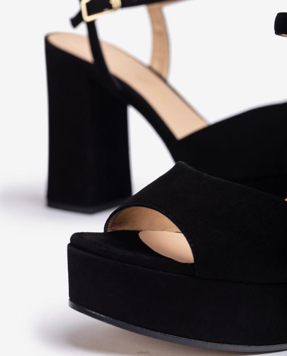 Vamp and heel suede sandal. 10.5 cm heel and a 3.2 cm platform covered in matching colour suede.