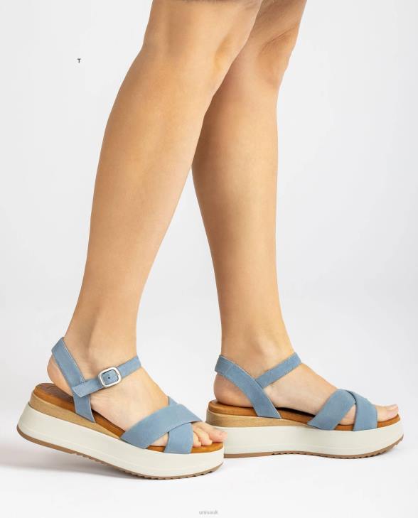 Suede wedge heel sandal. Cross-over straps on the vamp. Ankle strap that can be adjusted using the metal buckle. 6 cm wedge heel and 3.5 cm platform. Sporty midsole and a light and flexible rubber outsole.