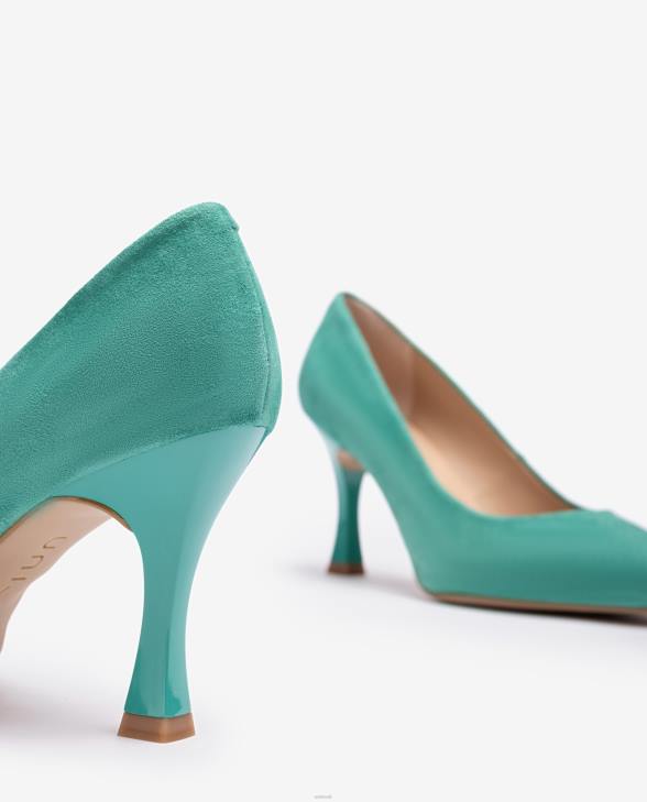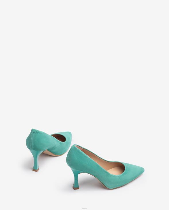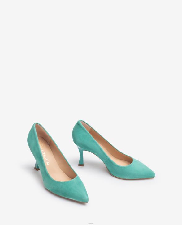 Pointy toe suede pump. 8cm slim heel painted in a matching tone. Light, flexible, non-slip, rubber sole. The design of the TOLA model from Unisa will surprise you!