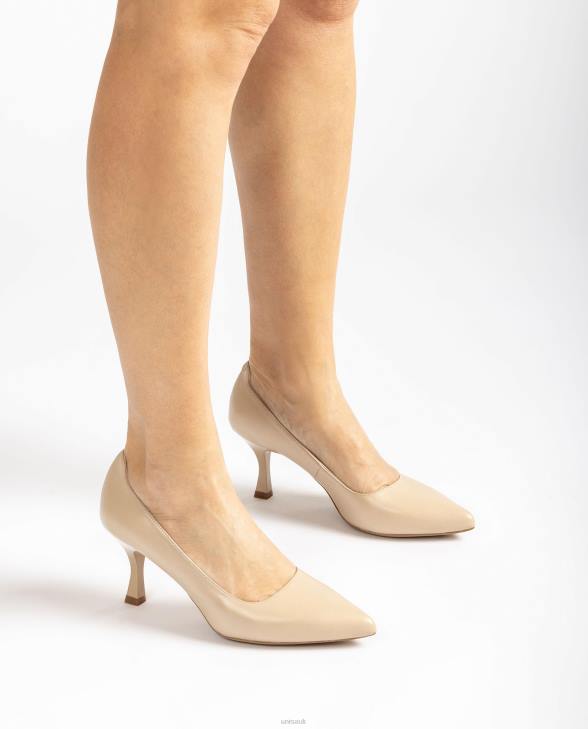 Pointed toe pump made in leather. Matching tone slim 7.5cm painted heel. Light, flexible, non-slip, rubber sole. Essential Unisa classics that are revamped each season.