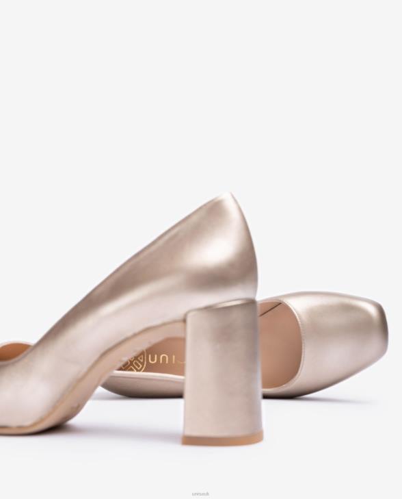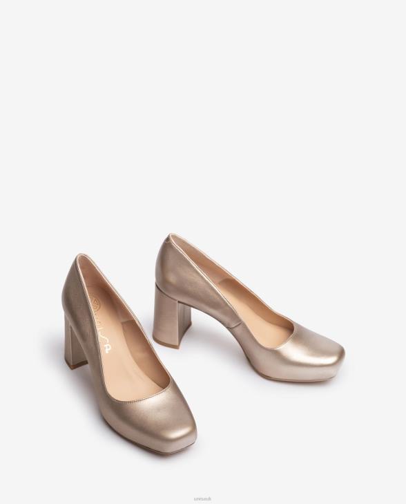 Square toe pump made in metallic effect leather. Inner 1.7cm platform and an 8cm heel in a matching tone. Light, non-slip, rubber sole. Fun allies for every day.