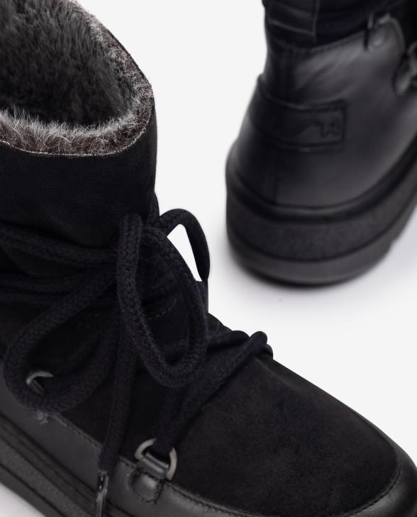 Apres ski ankle boot made in suede effect fabric with laces. Matching faux fur lining inside. Light, flexible and non-slip rubber SuperSoft sole and removable and ergonomic insole made with Respilon inner linning. They will be your best allies against the cold!
