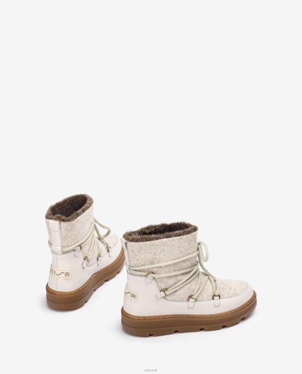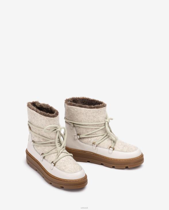 Apres ski ankle boot made in wool effect fabric with laces. Matching faux fur lining inside. Light, flexible and non-slip rubber Supersoft sole and removable and ergonomic insole made with