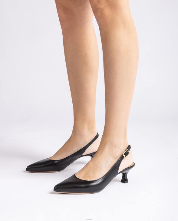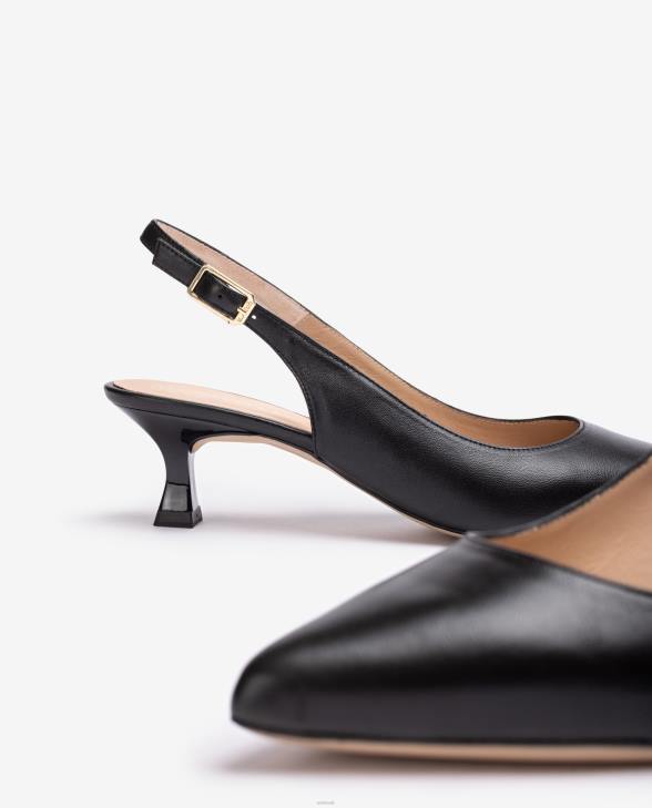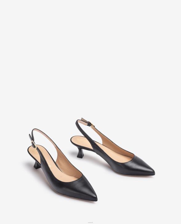 Pointed toe sling back shoe made in leather. 5cm high slim heel in a matching tone. Ankle strap that can be adjusted with the metal buckle. Light, flexible, non-slip, rubber sole. Essential Unisa classics that are revamped each season. Versatility and elegance in its pure state.