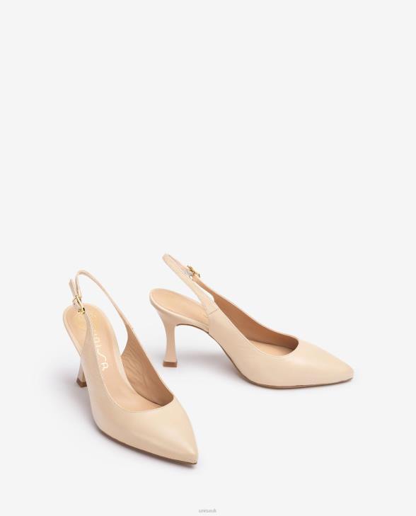 Pointy toe sling back made in leather. 8cm slim heel painted in a matching tone. Ankle strap that can be adjusted with the metal buckle and light, non-slip, rubber sole. The design of the TEODOR model from Unisa will surprise you!