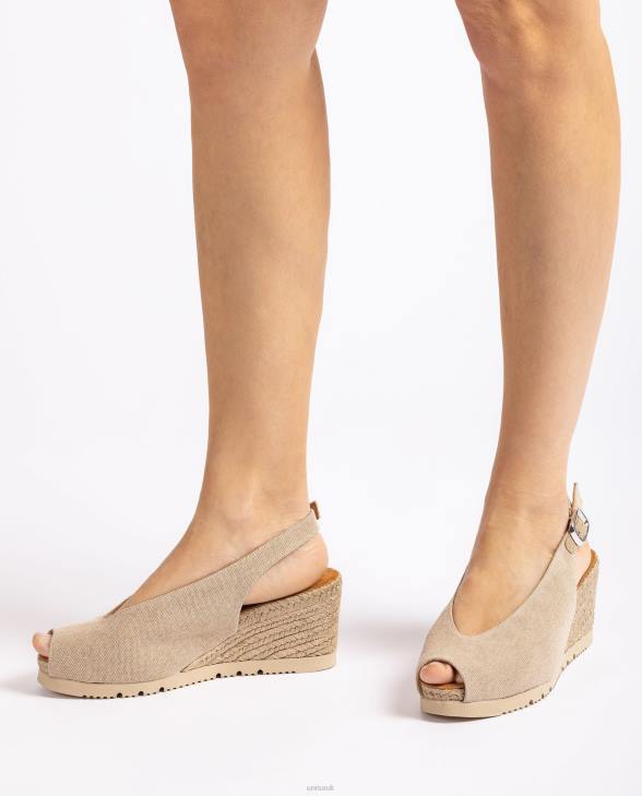 Espadrille style slingback sandals made in recycled fabric by Unisa. 7.5 cm heel and 2.5 cm platform. Non-slip, flexible, light rubber sole.