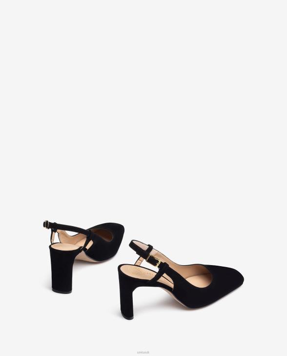 Square toe sling back made in suede. 7.5cm heel covered in a matching tone of suede. Light, flexible, non-slip, rubber sole and an ankle strap that can be adjusted with the metal buckle. The design of the WACU model from Unisa will surprise you!