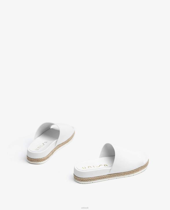 Flat sandals made of leather. Natural jute platform and very light and flexible rubber sole. Summer wouldn't be the same without Unisa's CANDEL sandals