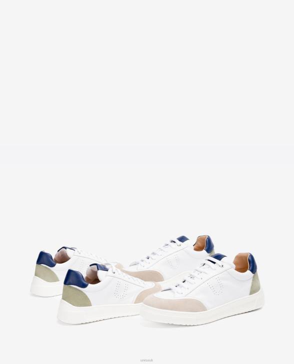 Sports shoe made in contrasting leather and suede. Punching trim on the sides. Adjustable with laces and a Supersoft removable and ergonomic insole. Very light and flexible sole. The design and the comfort of these sports shoes will surprise you! Available in up to size 45.
