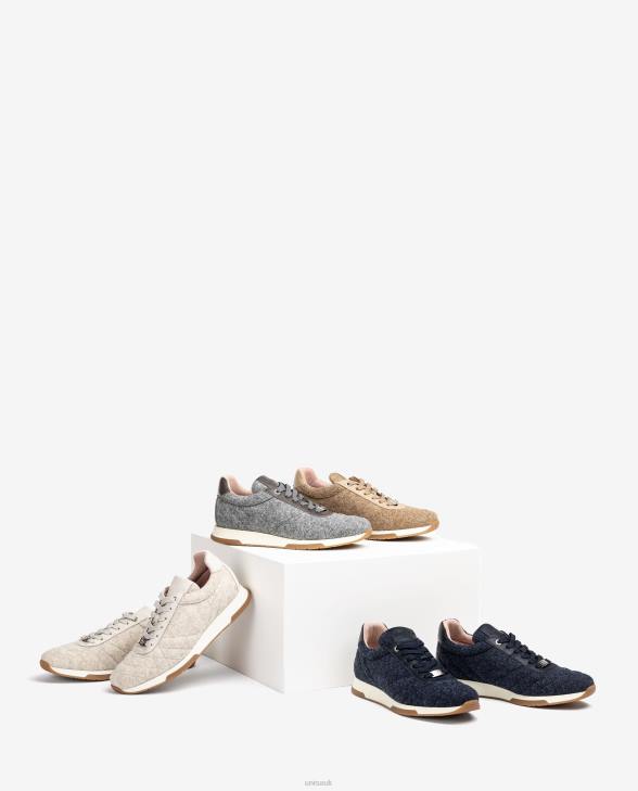 Sports shoe made in quilted effect recycled Ecowool fabric. Light, flexible and non-slip rubber Supersoft sole and removable and ergonomic insole that reduces fatigue caused by walking. Respilon lining inside. An urban and sophisticated concept that fits in with the UNISA philosophy perfectly.