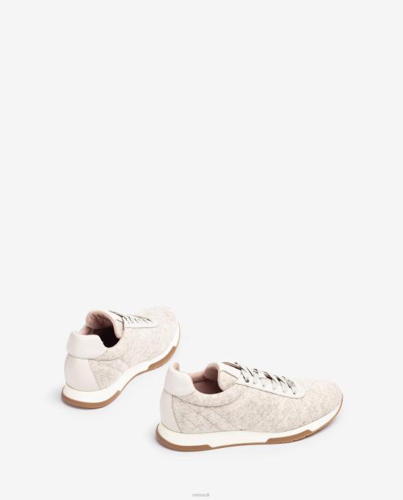Sports shoe made in quilted effect recycled Ecowool fabric. Light, flexible and non-slip rubber Supersoft sole and removable and ergonomic insole that reduces fatigue caused by walking. Respilon lining inside. An urban and sophisticated concept that fits in with the UNISA philosophy perfectly.