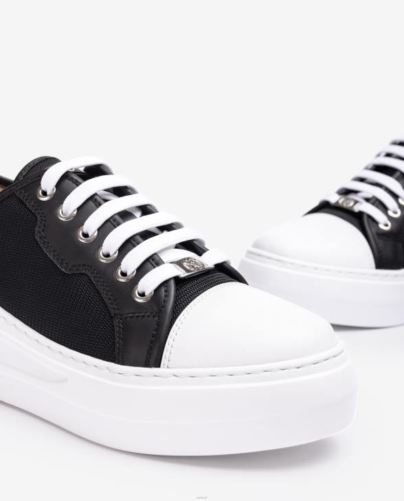 Sneakers made in contrasting fabric and metallic leather. White leather toe. Removable insole made with SuperSoft technology for more comfort. 4cm platform sole with volume. The Strobel stitching system has been used for more flexibility and lightness.