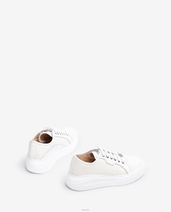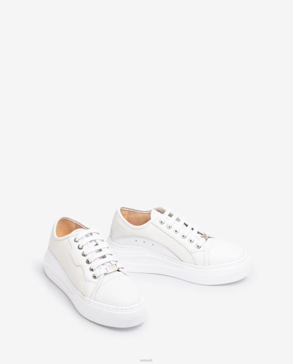 Sneakers made in contrasting fabric and metallic leather. White leather toe. Removable insole made with SuperSoft technology for more comfort. 4cm platform sole with volume. The Strobel stitching system has been used for more flexibility and lightness.