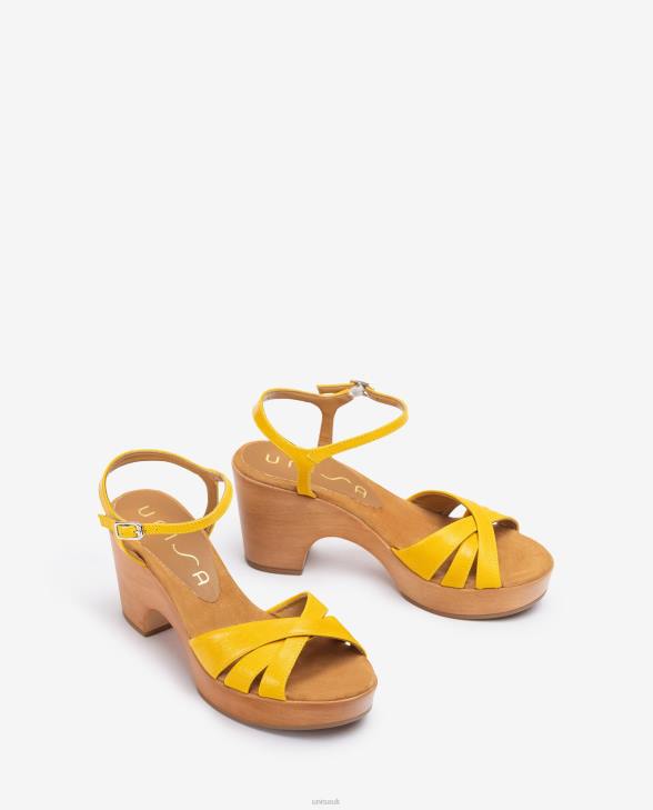 Leather crossed straps sandals. Ankle strap with adjusting metallic buckle. Wood effect 8cm block heel and a 3 cm platform. You won't be able to get your eyes off this perfect pair of summer shoes.