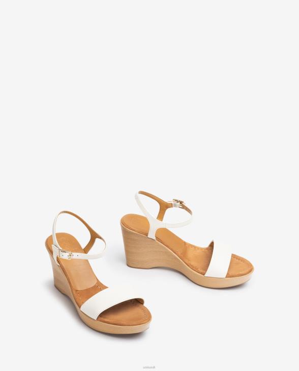 Sandal in various colours of leather, a strap on the instep that can be adjusted with the metal buckle. PU wood effect block with an 8.5cm heel and a 2cm platform. UNISA essence in its pure state.