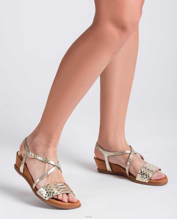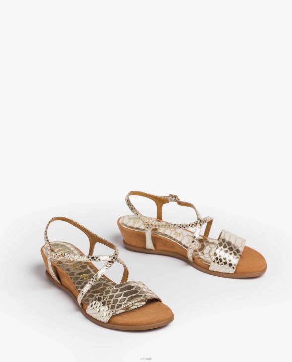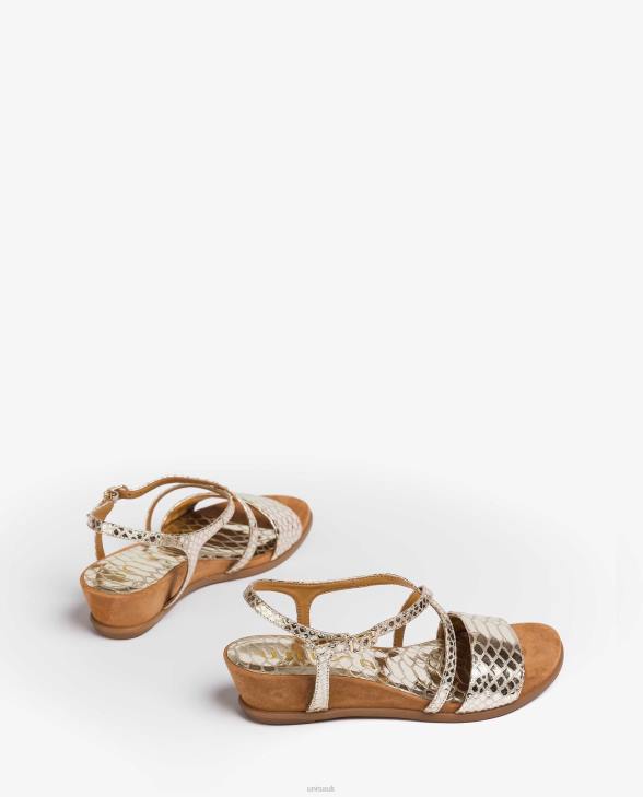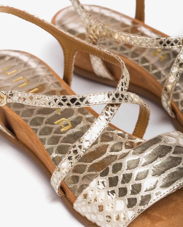 Women Unisa Metal effect snake print leather sandals Gold0X8N442